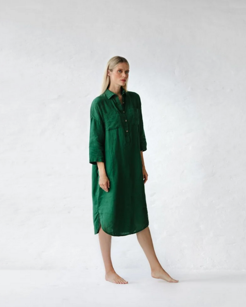 Baltic Linen Shirt Dress – Green