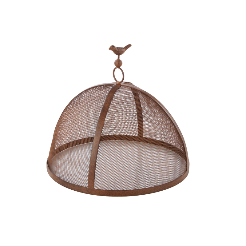 This bronze iron food cover measures 34x34x30cm, offering sturdy protection for your dishes. Its durable iron construction ensures lasting use, while the elegant bronze finish adds a refined touch to your table setting. Perfect for keeping food safe from insects and debris during outdoor dining or buffets, it combines functionality with a sophisticated design to maintain both hygiene and presentation.